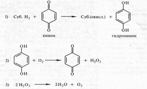 Органические соединения могут окисляться и другим способом благодаря отнятию водорода. Еще Бах, сделав упор на перекисную теорию, выдвинул и вторую гипотезу, согласно которой биологическое окисление связано с отнятием от субстрата электронов и протонов. Роль же кислорода состоит в этом случае в регенерации окисленного состояния первичного акцептора водорода. По Баху, последовательность реакций в процессе могла бы выглядеть следующим образом: