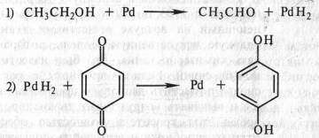 В том же 1912 г. появилась работа немецкого биохимика Г. Виланда, который также пришел к заключению о том, что биологическое окисление связано с отнятием водорода. Этот вывод он сделал, исходя из результатов модельных опытов. В качестве субстрата использовался этиловый спирт СН3СН2ОН, а в качестве окислителя — палладий в губчатой форме (так называемая палладиевая чернь). Происходило отнятие электронов и протонов и образовывался альдегид СН3СНО. Чтобы регенерировать восстановленный палладий и сделать реакцию долгоидущей, Виланд вводил хинон: