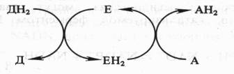 Донор (Д) отдает электроны и протоны, акцептор (А) принимает их, а энзим (Е) осуществляет реакцию переноса. Существуют три группы оксидоредуктаз: