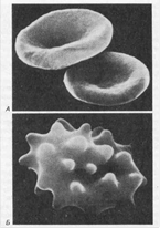 При заболеваниях могут появляться аномальные формы эритроцитов, что чаще всего обусловлено изменением структуры гемоглобина (Но). Замена даже одной аминокислоты в молекуле НЬ может быть причиной изменения формы эритроцитов. В качестве примера можно привести появление эритроцитов серповидной формы при серповидно-клеточной анемии, когда у больного имеет место генетическое повреждение в р-цепи гемоглобина. Процесс нарушения формы эритроцитов при заболеваниях получил название пойкилоцитоз.