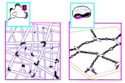 Рис.13. Цитоскелет фибробласта и эритроцит