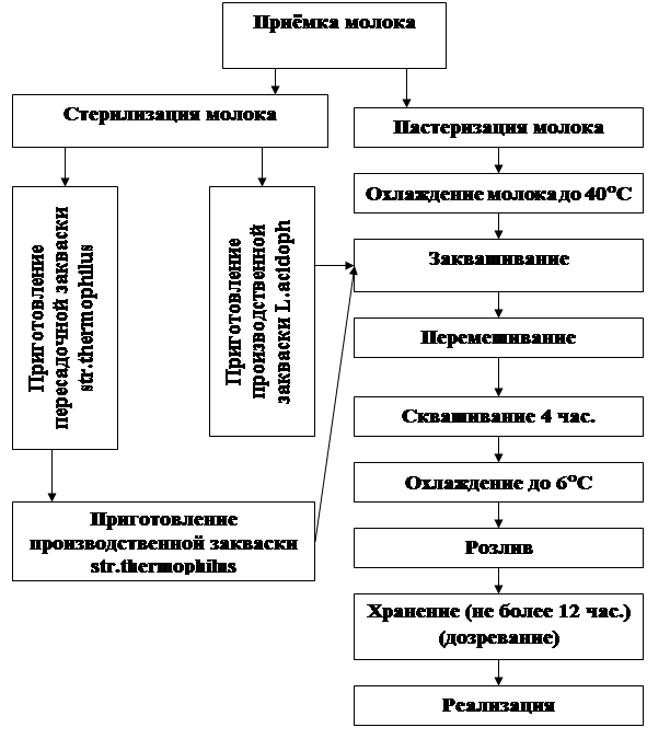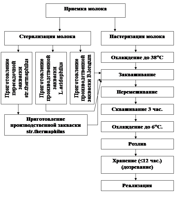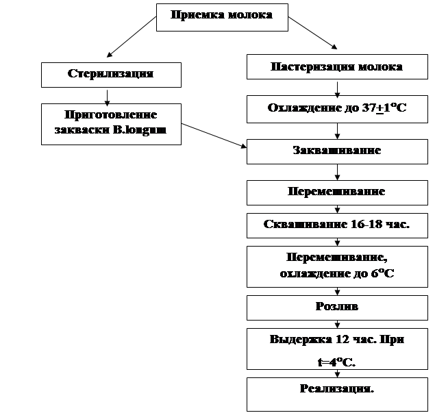 Бифилакт. (ТУ БГ-003-00-98) Кисломолочный продукт, вырабатываемый сквашиванием цельного пастеризованного молока симбиотической закваской, состоящей из молочнокислых и бифидобактерий. Продукт изготавливается по следующей схеме (рис.3).