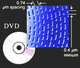 В то время, как лазер в обычном устройстве CD-ROM имеет длину волны 780-нанометров (nm), устройства DVD используют лазер с длиной волны 650-nm или 635-nm, что позволяет покрывать лучом в два раза больше насечек на одном треке, и в два раза больше треков, расположенных на одной записанной поверхности. Другие нововведения - это новый формат секторов, более надежный код коррекции ошибок, и улучшенная модуляция каналов. Вместе, эти улучшения дополнительно увеличивают плотность записи данных в полтора раза. Жесткие производственные требования и незначительно большая поверхность записи, стали последним препятствием, при разработке DVD, из-за чего емкость данных, размещаемых на диске ограничена 4.7Gb. Но оказалось, что это не предел. Для записи видео и звука на DVD применяется очень сложная технология компрессии данных, носящая имя MPEG-2. MPEG-2 представляет из себя следующее поколении стандарта на сжатие (компрессию) видео и звуковых данных, обеспечивающего возможность разместить большие объемы информации в меньшем пространстве. Стандарт сжатия MPEG разработан Экспертной группой кинематографии (Moving Picture Experts Group - MPEG). MPEG это стандарт на сжатие звуковых и видео файлов в более удобный для загрузки или пересылки, например через интернет, формат. По стандарту MPEG-1 потоки видео и звуковых данных передаются со скоростью 150 килобайт в секунду -- с такой же скоростью, как и односкоростной CD-ROM проигрыватель -- и управляются путем выборки ключевых видео кадров и заполнением только областей, изменяющихся между кадрами. К несчастью, MPEG-1 обеспечивает качество видеоизображения более низкое, чем видео, передаваемое по телевизионному стандарту.