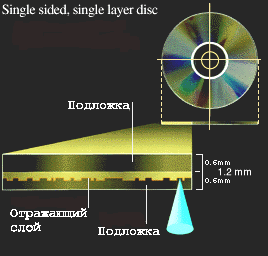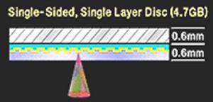 Single Side/Single Layer (односторонний/однослойный): это самая простая структура DVD диска. На таком диске можно разместить до 4.7 Гб данных. Кстати, эта емкость в 7 раз больше емкости обычного звукового CD и CD-ROM диска.