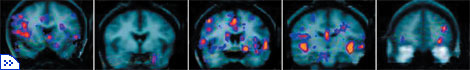 Микрофотографии прилежащего ядра животных, находящихся под воздействием ненаркотических веществ: дендриты с обычным количеством шипиков — выростов, улавливающих нервные сигналы (слева и в центре). У животных, пристрастившихся к кокаину, шипиков на дендритах гораздо больше (справа). Учёные предполагают, что подобные перестройки повышают чувствительность нейронов к сигналам из ВОП и других структур мозга и таким образом повышают чувствительность к наркотикам. Как показывают последние исследования, определённую роль в образовании дополнительных дендритных шипиков играет дельта-fosB. |