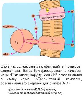 Протоны могут перекачиваться через мембрану и при фотосинтезе в хлоропластах или в клетках фотосинтезирующих бактерий (Рис. 8).