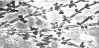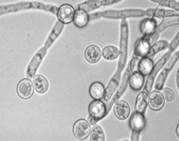 Хламидоспоры – крупные сферические или овальные клетки, которые образуются как из одиночных дрожжевых вегетативных клеток, так и на мицелии: интекалярно, латерально или терминально, по одной или цепочками. Хламидоспоры на мицелии образует, например, Candida albicans (рисунок №2). В хламидоспорах значительно снижена метаболическая активность, их клеточные стенки обладают устойчивостью к действию литических факторов. Биологическая функция таких структур заключается в длительном сохранении жизнеспособности в условиях голодания или низкой влажности. (http://www.ss.msu.ru/soilyeasts/PicsList.htm)