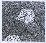 В участке локализации "бляшки" слизистая оболочка образует куполоподобный выступ. Групповые лимфоидные фолликулы, как и другие лимфоидные образования, имеют В - и Т-клеточную зоны (Рис.2). В-Зона представлена скоплением фолликулов, которые заселенные В-лимфоцитами и размещены в глубине слизистой оболочки. Т-Зона занимает межфолликулярное пространство, где расположены венулы с высоким эндотелием, и распространяется глубже под фолликулы, где проходит артерия. Кроме Т-лимфоцитов, которые доминируют в этой зоне, тут расположены ИДК. В зоне купола между эпителием и фолликулами в непосредственном контакте с эпителиальными клетками содержатся Т - и В-лимфоциты со значительным преобладанием последних. Большинство В-лимфоцитов составляют клетки памяти. Изредка тут встречаются плазматические клетки.