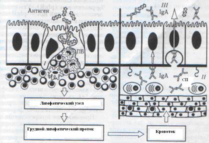 Рис.7. Развитие иммунного ответа в слизистых оболочках: