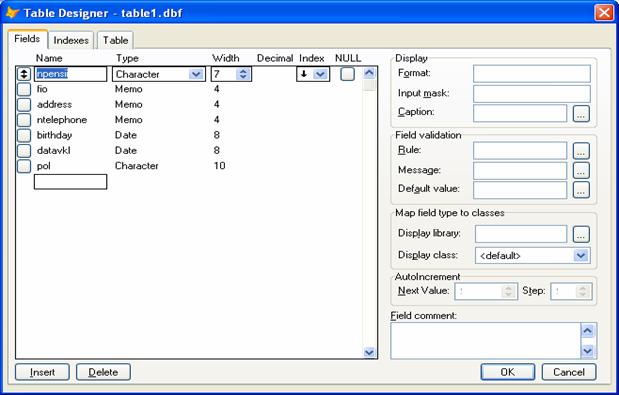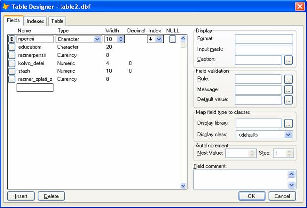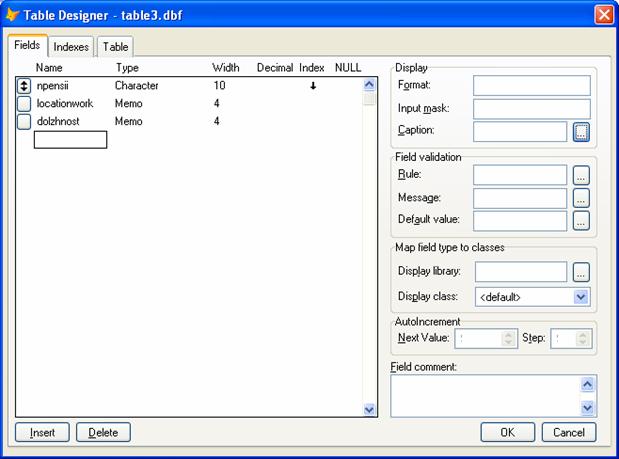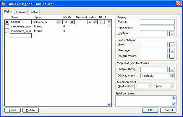 К каждой таблице нужно ввести Index. В каждой таблице выберем в качестве Index’а поле npensii. По этому полю будет связываться таблицы.