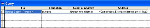 2.6.1 Создания запроса, который будет выводить список получателей пенсии с высшим образованием и являющиеся лауреатами государственных премий