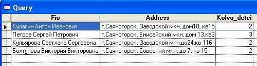 2.6.2 Создания запроса, который будет выводить списко получателей пенсии имеющих иждивенцев не менее двух