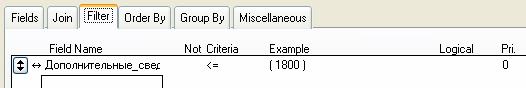 Рис. 2.6.2.2 Вкладка Filter (фильтр) с условием фильтрации для второго запроса