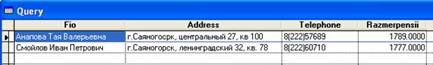 2.6.3 Создания запроса по выборке получателей пенсии, которые не достигли прожиточного минимума