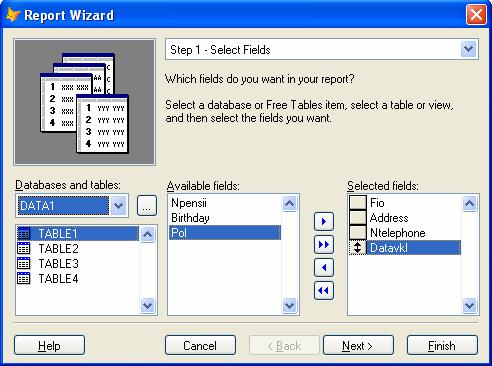 Рис. 2.7.1.1 Определение полей для группировки данных в отчете