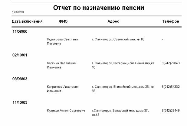 (Приложение 2. Отчет «Справка пенсионеру»)