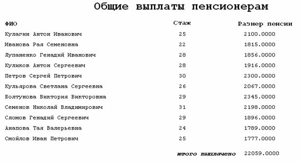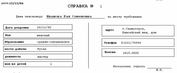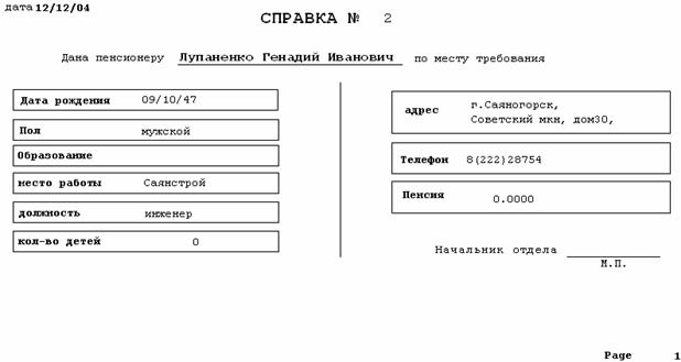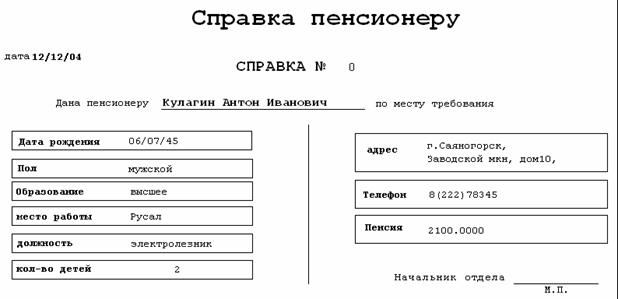 Рис. 2.7.2.5 Отчет Справка пенсионеру в виде modify….