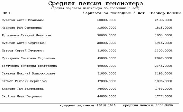 Рис. 2.7.2.6 Отчет средняя пенсия пенсионеров в виде modify….