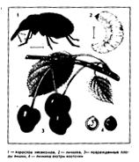 Размер взрослого насекомого 4—5 мм. Повреждает черешню, реже вишню, жимолость и барбарис.