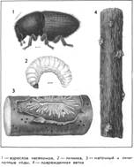 Плодовые деревья повреждает также плодовый заболонник. По образу жизни и характеру повреждений этот вид близок к морщинистому заболоннику.
