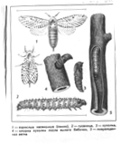 Повреждает различные лиственные породы, в том числе и плодовые.