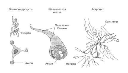 Во всех органах человеческого тела, кроме мозга, функционирующие клетки удерживаются вместе межклеточным веществом соединительной ткани В нервной системе эту роль выполняет глия (от греч. глия - клей), клетки которой образуются из общих с нейронами предшественниц на раннем этапе развития мозга. Глия создает опору для нейронов, объединяет отдельные элементы нервной системы, но, в то же время, изолирует друг от друга разные группы нейронов, а также большую часть их аксонов. Тем самым она формирует структуру мозга. Численность клеток глии превышает количество нейронов в мозгу приблизительно в 10 раз. Эти клетки отличаются друг от друга по внешнему виду и по выполняемой функции.