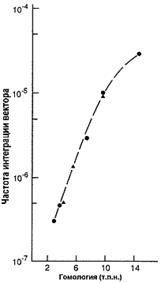 Рис. 3. Зависимость частоты интеграции вектора от длины гомологичных плеч [22].