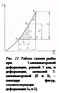 Из рис. 10 видно, что чем меньше сопротивляемость сжатию тела рыбы, тем меньше угол наклона кривой к оси абсцисс, а следовательно, меньше и работа сжатия. Так как из трех видов рыб (ставриды, скумбрии, сардинеллы) наибольшая работа затрачивается на деформацию тела ставриды, то, следовательно, и жесткость тела ставриды будет наибольшей. Для некоторых видов рыб, например кильки, определить экспериментально работу сжатия при 5-миллиметровой деформации практически невозможно, потому что вся толщина тела рыбы не превышает 5 мм. В этом случае для получения соизмеримых значений жесткости можно пересчитать работу при 5-милиметровой, на работу при 5-миллиметровой деформации. На рис. 11 показана работа при деформации λ1 и λ.