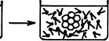Гидрофобные молекулы образуются незаряженными и неполяризованными атомами и группами атомов. Они не связывают воду, не смачиваются. Таковы, например, алифатические цепочки вида СНз—CH2—CH2— . да и сами образующие их группы CH3— и —CH2— . Высока гидрофобность ароматических молекул: бензола (C6H6), фенола, толуола и других, в состав которых входят разного рода замкнутые циклы с сопряженными связями. Вода такие молекулы как бы «не замечает». Но, оказавшись в воде, несмачиваемые молекулы занимают место и мешают молекулам воды образовать максимально возможное при данной температуре число связей. Помехи уменьшатся, если гидрофобные молекулы соберутся в тесные кучки (капли), как показано на рис. 3, где кружками изображены гидрофобные молекулы, а зачерненными — молекулы воды.