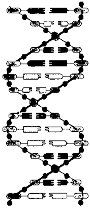 Дезоксирибонуклеиновая кислота, или ДНК (рис. 1), впервые была выделена из клеточных ядер. Поэтому ее и назвали нуклеиновой (греч. nucleus - ядро). ДНК состоит из цепочки нуклеотидов с четырьмя различными основаниями: аденином (А), гуанином (G), цитозином (С) и тимином (Т). ДНК почти всегда существует в виде двойной спирали, то есть она представляет собой две нуклеотидные цепи, составляющие пару. Вместе их удерживает так называемая комплементарность пар оснований. "Комплементарность" означает, что когда А и Т в двух цепях ДНК расположены друг против друга, между ними спонтанно образуется связь. Аналогично комплиментарную пару образуют G и С. В клетках человека содержится 46 хромосом. Длина генома человека (все ДНК в хромосомах) может достигать двух метров и состоит из трех миллиардов нуклеотидных пар. Ген - это единица наследственности. Он представляет собой часть молекулы ДНК и содержит закодированную информацию об аминокислотной последовательности одного белка или рибонуклеиновой кислоты (РНК).