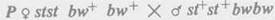 где знак «+» соответствует нормальным (доминантным) аллелям генов: bw и st. Тогда самки и самцы образуют по одному типугамет - соответственно st bw+ и st+bw, а генотип гибридов F1 будет: st+st bw+bw.