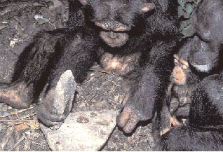 Как показано на фотографии, обезьяна учит своего детеныша искусству разбивания орехов. У шимпанзе хорошо развита система обучения. Если раньше проводили четкую грань между человеком и животными в том, что у человека есть культура, а у обезьян нет, то на данном примере можно увидеть, что эта система обучения является как бы пракультурой.