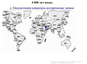 4 тысяч лет назад в Месопотамии появились первые исторические записи, говорившие о представлениях живших в то время людей; 2-3 тысячи лет назад письменная культура распространилась в Древнем Китае и Египте, в Греко-романском мире.