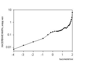 Интересно заметить, что уникальность человеческого вида заключается в том, что ни один вид животных кроме человека (и сопровождающих его крыс и тараканов) не смог расселиться от экватора и до северных широт. Причем это произошло в основном не из-за биологической гибкости, а из-за того, что человек смог использовать свою культуру и был способен к созданию социальных структур, таким образом, адаптируясь к изменениям внешней среды. Удавалось это человеку непросто. Если посмотреть на рисунок, то видно, что население Земли неуклонно росло. На данный момент население Земли составляет около 7млрд. человек.