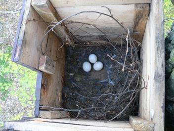 Рисунок 10 - Кладка серой неясыти в искусственном гнездовье, которое занимала белка. Фото Кителя Д.