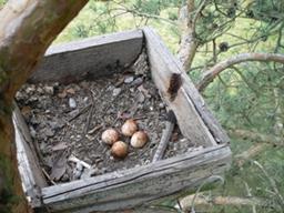 Рисунок 14 - Кладка пустельги обыкновенной в ящике, из которого вылетели птенцы ушастой совы. Фото Кителя Д.
