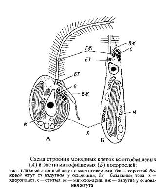 На рис. 22 приведены схемы монадных клеток желтозеленых водорослей.