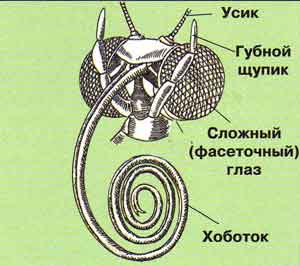 Ротовые аппараты-Грызущий, с функционирующими мандибулами и развитыми жевательными лопастями максилл или сосущего типа — хоботок образован сильно видоизменёнными нижними челюстями, образующими трубочку, в покое спирально свёрнутую. Хоботок состоит из двух полутрубчатых частей, которые соприкасаются краями и скрепляются заходящими друг на друга щетинками. Внутри него расположены мелкие чувствительные волоски, выполняющие рецепторную функцию.