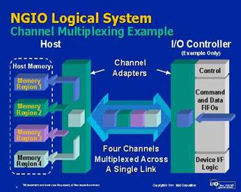 NGIO предоставляет совершенно отличный подход к организации шины периферийных устройств. В основе этого подхода лежит не слотавая, а линковая организация интерфейса между устройствами ввода-вывода и адаптером каналов (Channel Adapter).