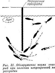 для стаи песчанки (Ammodytidae), преследуемой пловцом. В момент внезапного испуга (например, бросок хищника) стая мелких рыб часто рассыпается веером, что также дезориентирует хищника. Рассеявшаяся таким образом стая обычно снова быстро восстанавливается. Следует заметить, что картина реагирования стаи пелагических рыб на хищника и специфика ее маневрирования в значительной степени зависят также от соотношения направлении движения стаи и движения хищника.