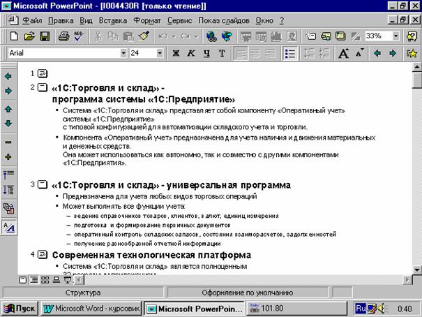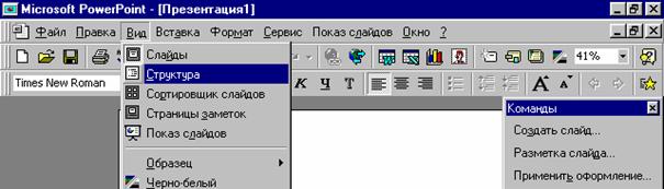 Если мы хотим перейти из вида структуры в вид слайдов, нужно выполнить двойной щелчок на значке соответствующего слайда.