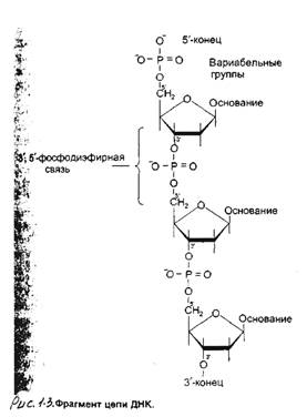 Концевые нуклеотиды ДНК различают по структуре: на 5'-конце находится фосфатная группа, а на 3'-конце цепи - свободная ОН-группа. Эти концы называют 5' и 3'-концами — см рисунок 1.3.