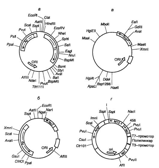 Различные векторы для клонирования ДНК и их рестрикционные карты приведены на рисунке 1.4