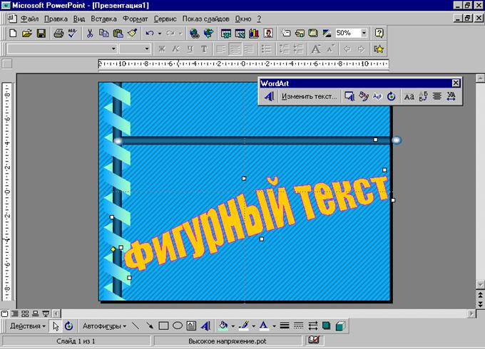создания фигурного текста надлежит щелкнуть в области слайда. Результат вставки фигурного текста представлен на