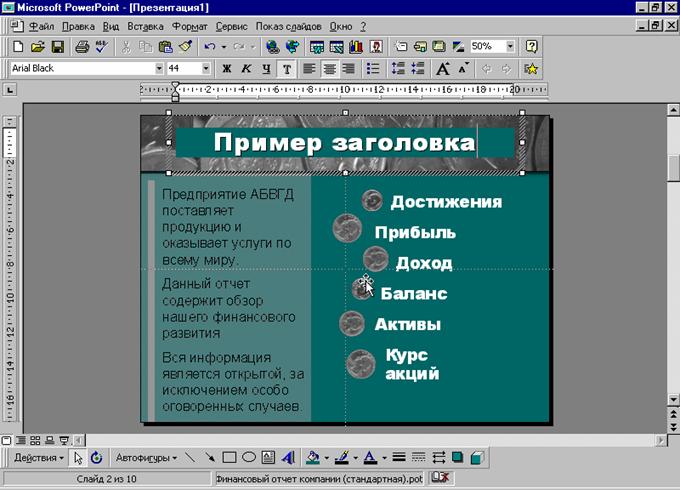Power Point - работа с текстом в презентацияхРефераты >> Программирование и компьютеры >> Power Point - работа с текстом в презентациях
