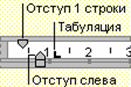 На линейке обозначаются позиции табуляции и втяжки для текста, находящегося внутри данного текстового объекта.