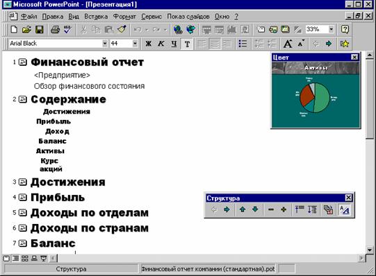 Создание новой презентации в режиме структуры