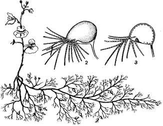 Насекомоядные растения. Большой интерес представляют высшие растения со своеобразным типом азотистого питания. Сюда относятся некоторые сапрофиты, паразиты, полупаразиты и, наконец, насекомоядные растения. Своеобразие азотистого, а у некоторых форм и углеродного питания возникло в процессе эволюции под влиянием условий существования и естественного отбора. Таким образом, в отличие от грибов и бактерий, где гетеротрофное питание азотом имеет первичный характер, у этих растений оно возникло вторично. Наиболее интересную группу растений, питающихся органическим азотом, составляют насекомоядные растения.