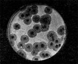 Иллюстрация 14: Негативные колонии бактериофага средней величины. Увел. 1:1