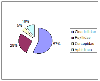 Далее хотелось бы остановиться на преобладающем по численности отряде – Homoptera, к сожалению, определение было осуществлено только до уровня семейств (рис. 8).